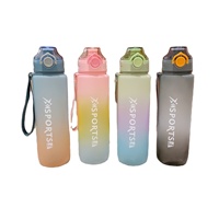 Vente en gros Mignon 500ml 900ml 1000ml Bouteille d'eau en plastique dégradé pour sport et camping avec paille